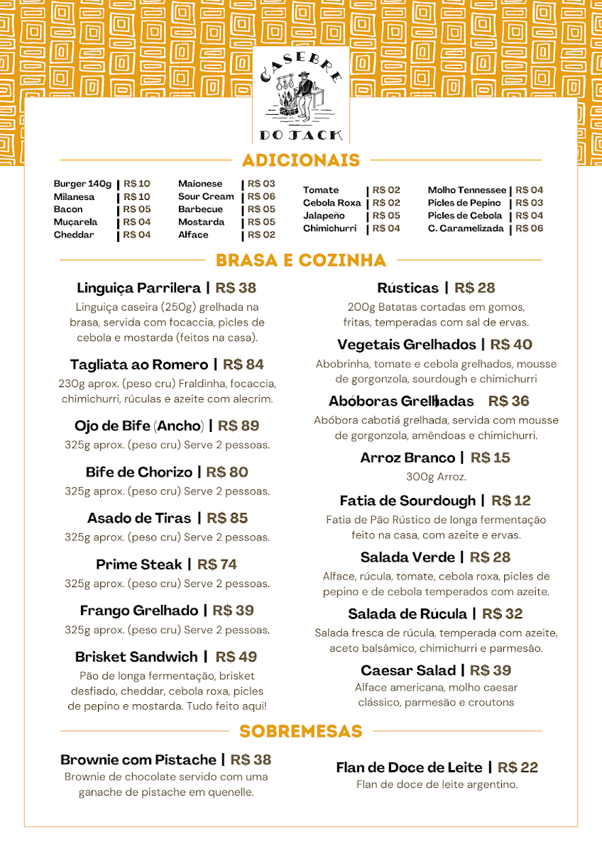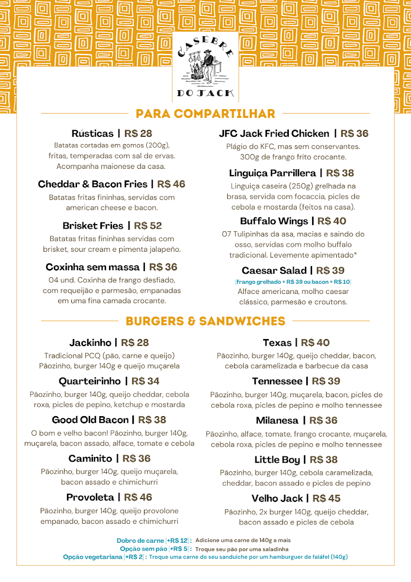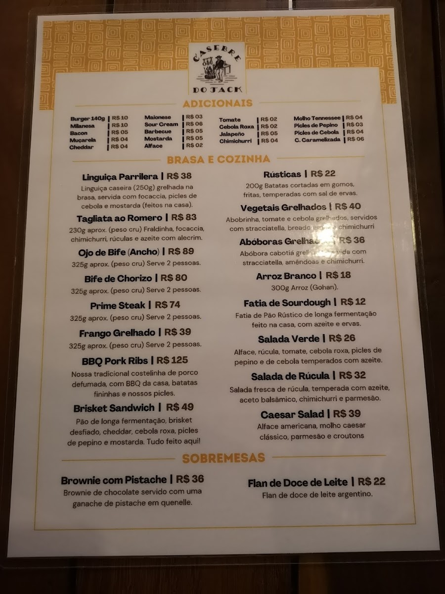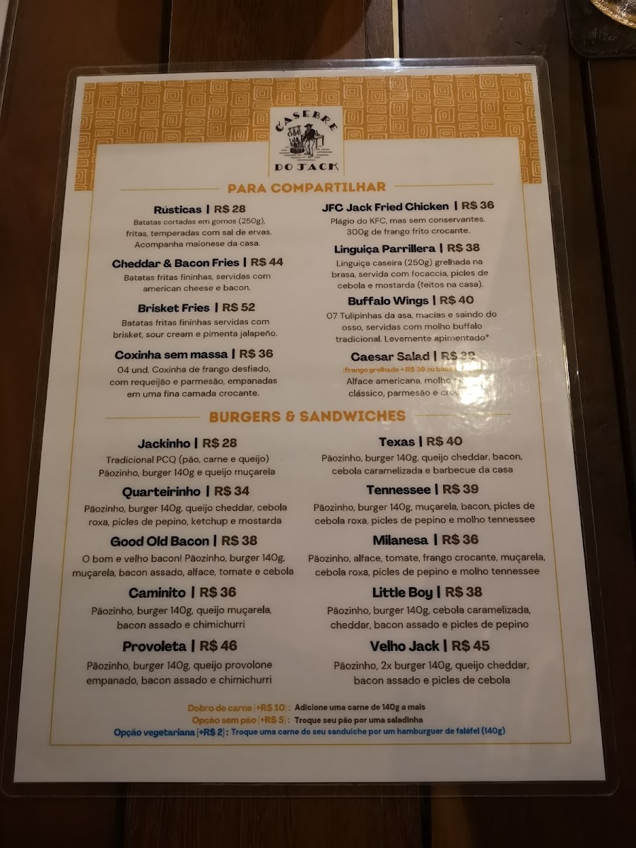The menu at Casebre Do Jack offers a balanced blend of hearty comfort foods and refined flavors, appealing to both casual diners and those seeking a more elevated experience. The bar selection shines with the refreshing Chopp, perfect for pairing with almost any dish. Among the burgers, the New England Burger stands out with its perfectly cooked patty and harmonious toppings, delivering both richness and freshness in every bite. For those seeking a more indulgent main course, the Rack of Lamb impresses with tender, flavorful meat that reflects careful preparation and quality ingredients. Meanwhile, the Brisket Com Fritas showcases a satisfying combination of smoky, slow-cooked brisket paired with crisp, golden fries, making it a standout for comfort food enthusiasts. The menu demonstrates a thoughtful balance between inventive flavors and classic favorites, ensuring that each dish is both memorable and satisfying. From drinks to mains, Casebre Do Jack delivers a cohesive culinary experience that is consistently enjoyable and well-executed.